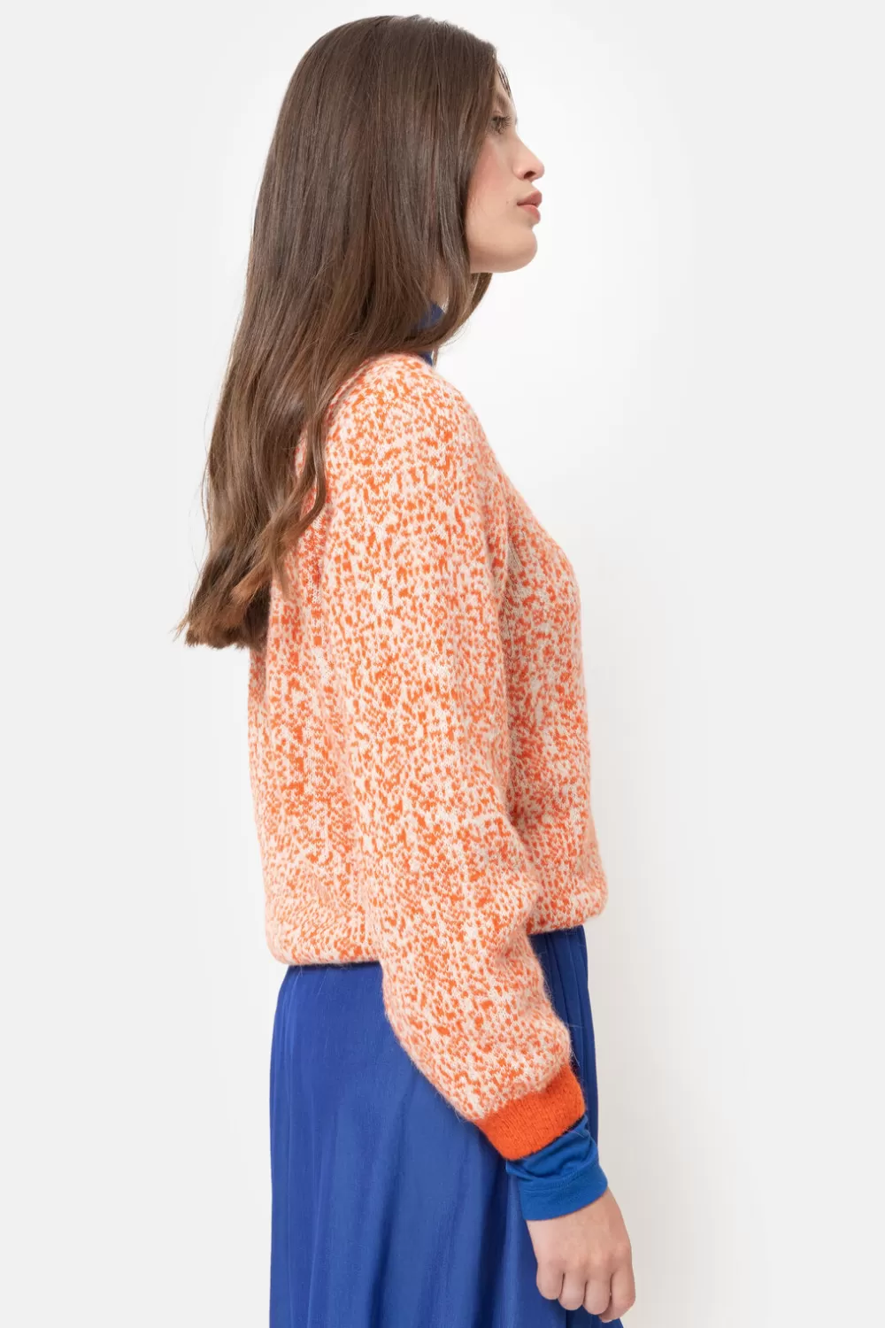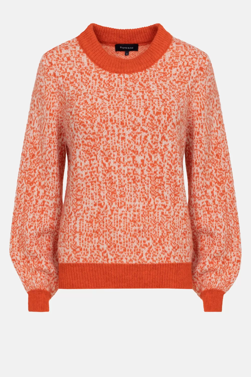 Gebreide Trui Met Een Oranje Gespikkeld Motief.Een Modieuze Boxysnit Met Lange Pofmouwen.Een Elegante, Ronde Hals En Eff…