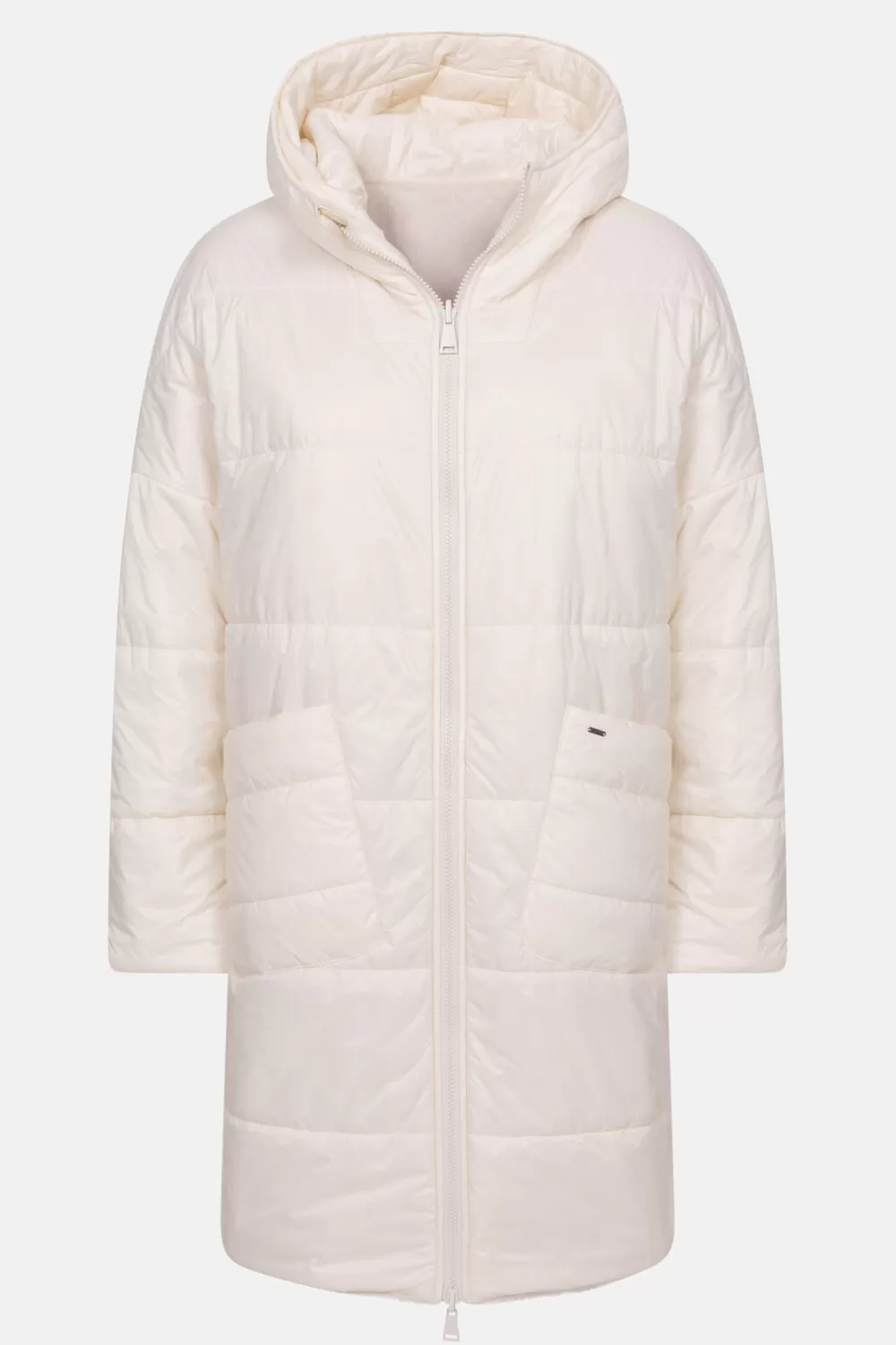 Ecru Quilted Halflange Wintermantel Voor Dames