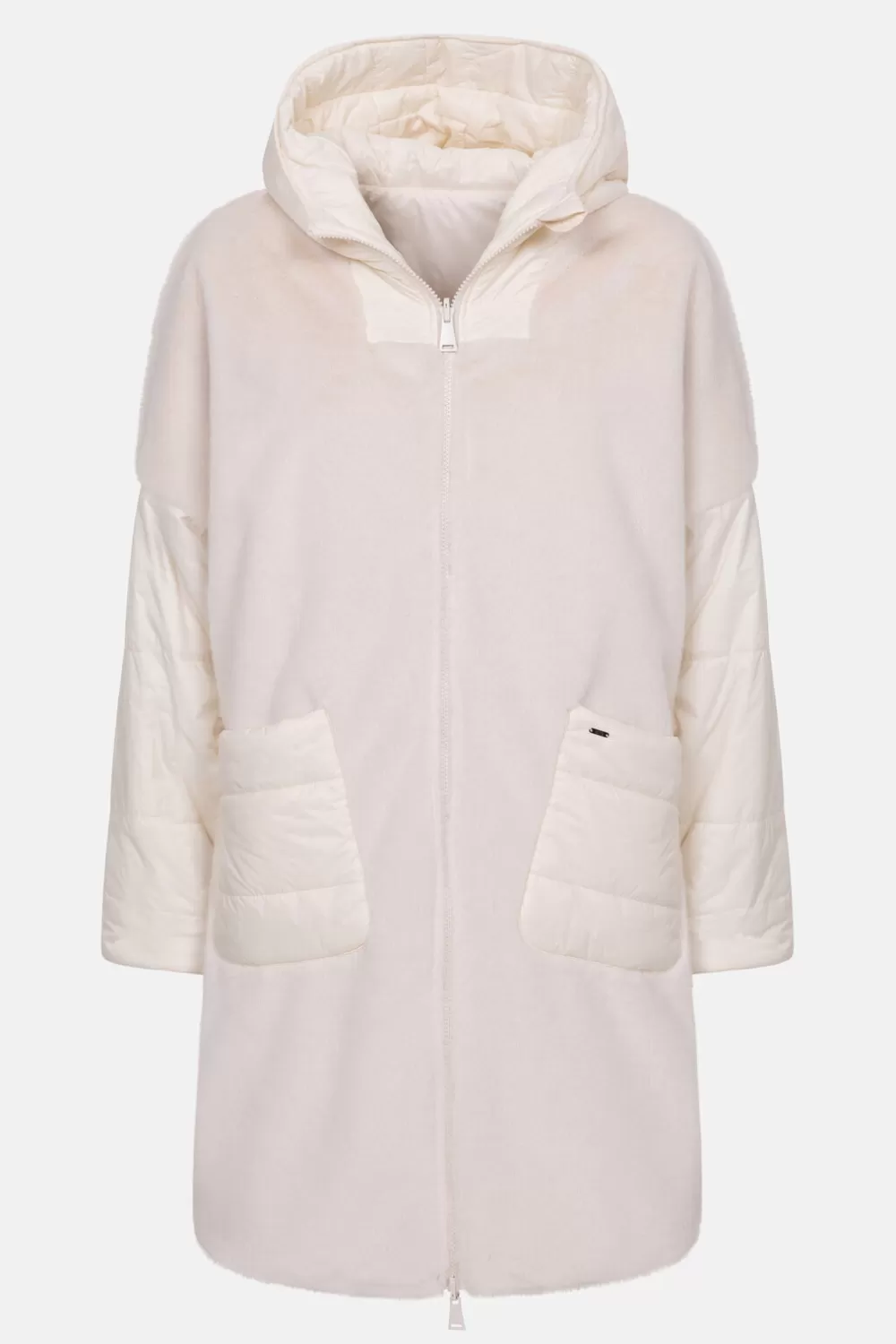 Ecru Quilted Halflange Wintermantel Voor DamesMet Een Zachte Voering Van Chic Imitatiebont.Draag Met De Doorgestikte Of …