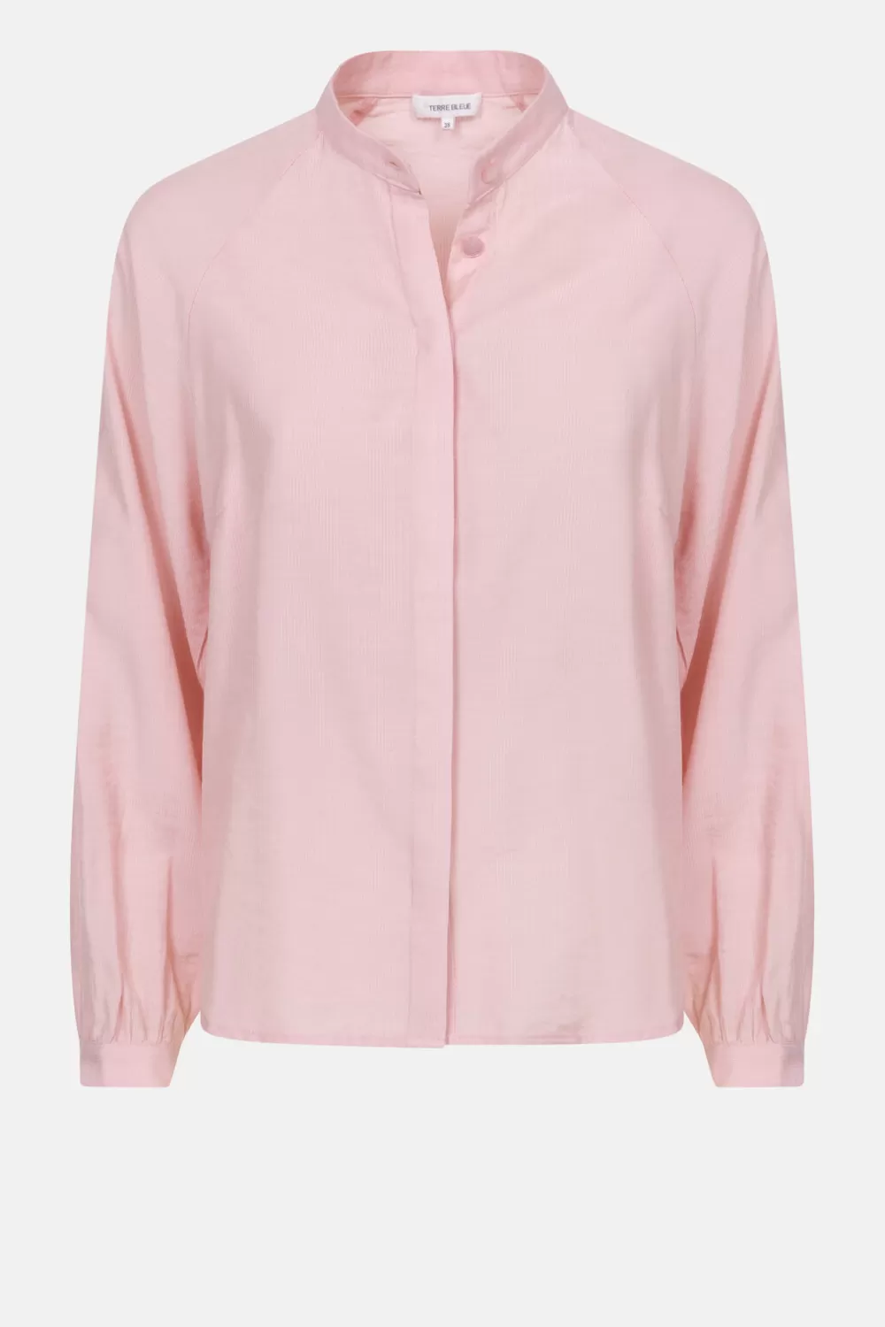 Lila Bloesje In Een Viscosemix Met Fijne Strepen.