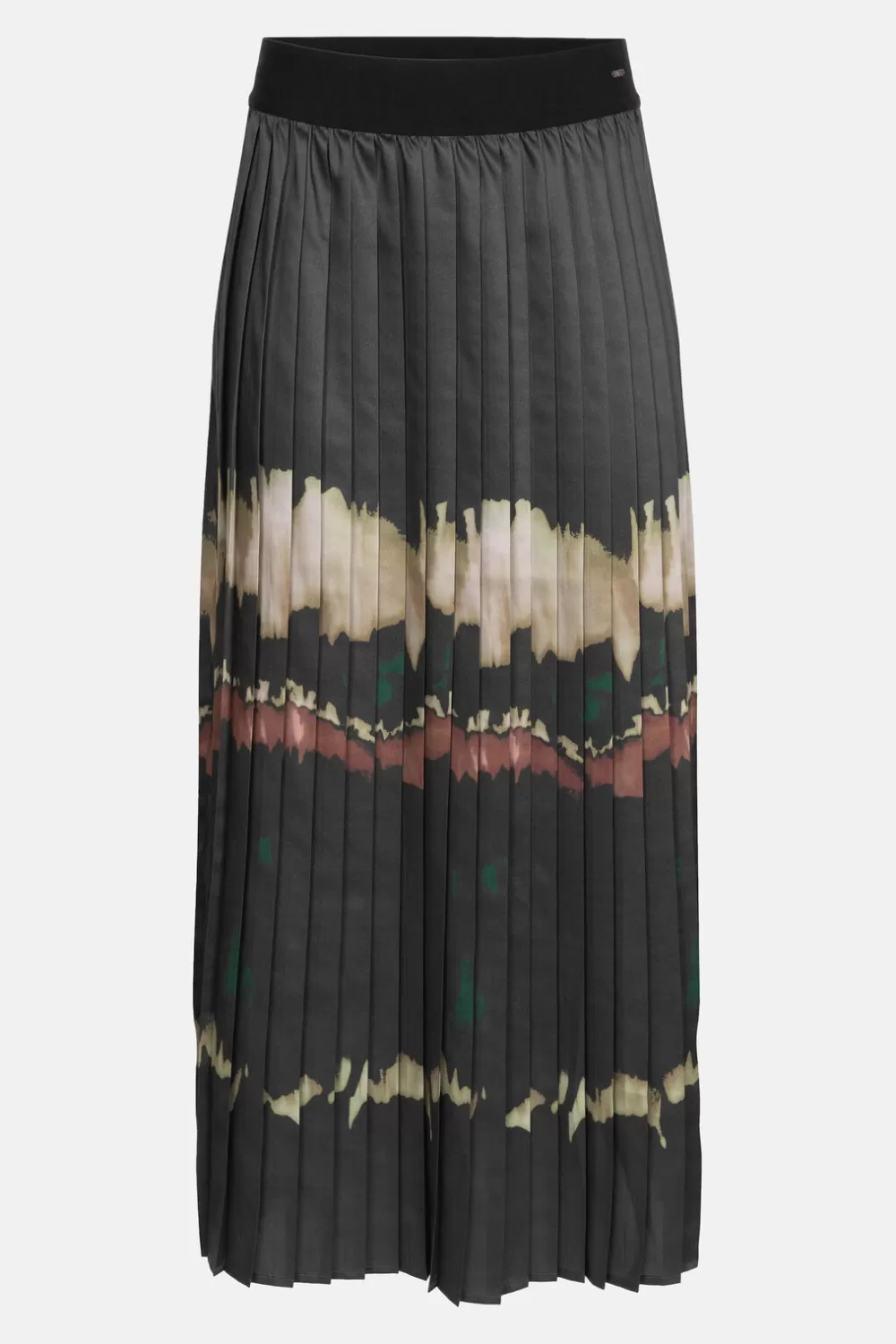 Donker Kaki Plisse Rok In Subtiel Glanzende Stof.