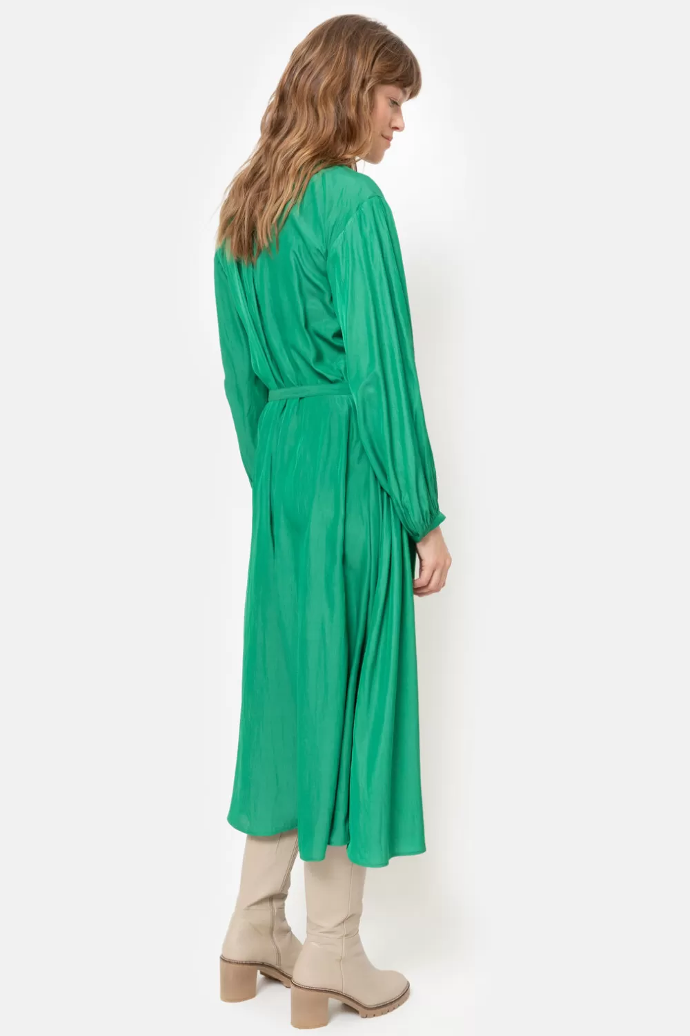 Groen Lang Kleedje In Een Fijne, Zwierige Stof.Met Groene Knoopjes En Een Elegant Taillelint.Lange Mouwen En Een Maokraa…