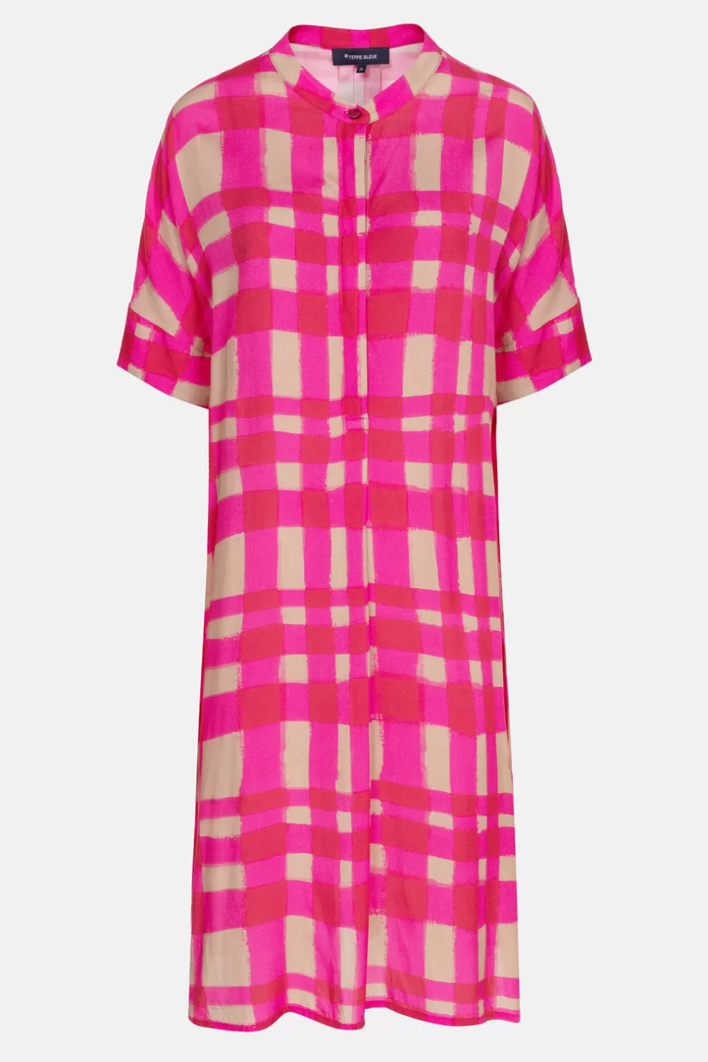 Felroze Geruite Damesjurk In 100% Soepel Viscose.Een Oversized Fit Met Korte Mouwen En Ronde Hals.Combineer Trendy Met E…