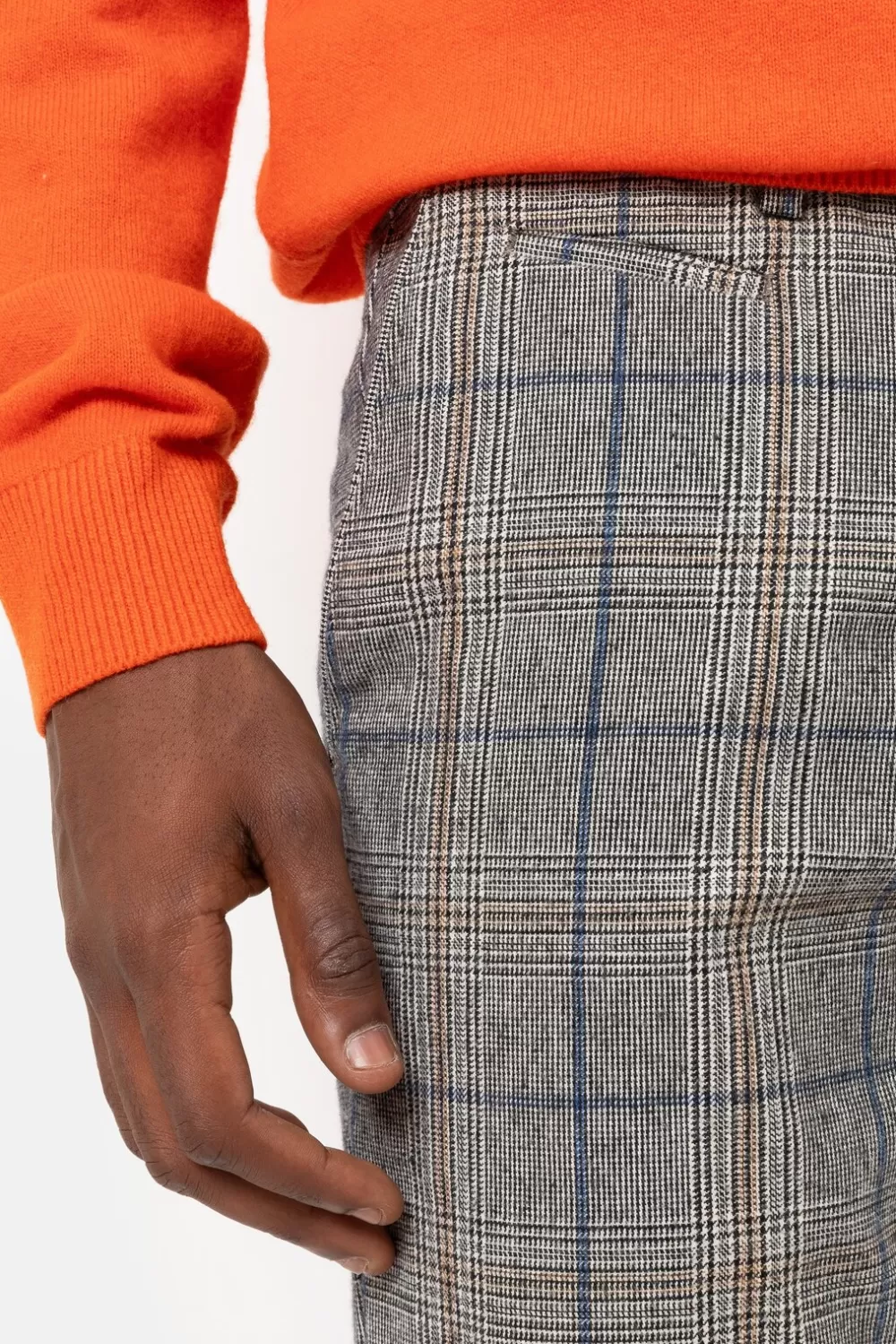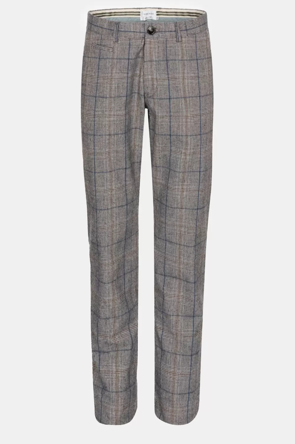 Grijze Mannenbroek In Een Zachte Katoenmix.Met Geklede Zakjes Met Knopen Op De Rug.Style Met Een Blauw Hemd En Debardeur…