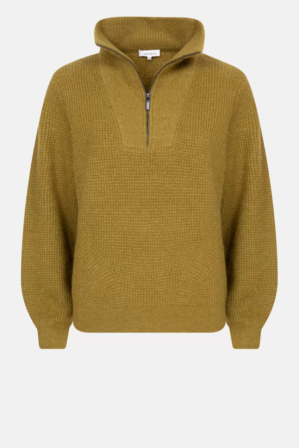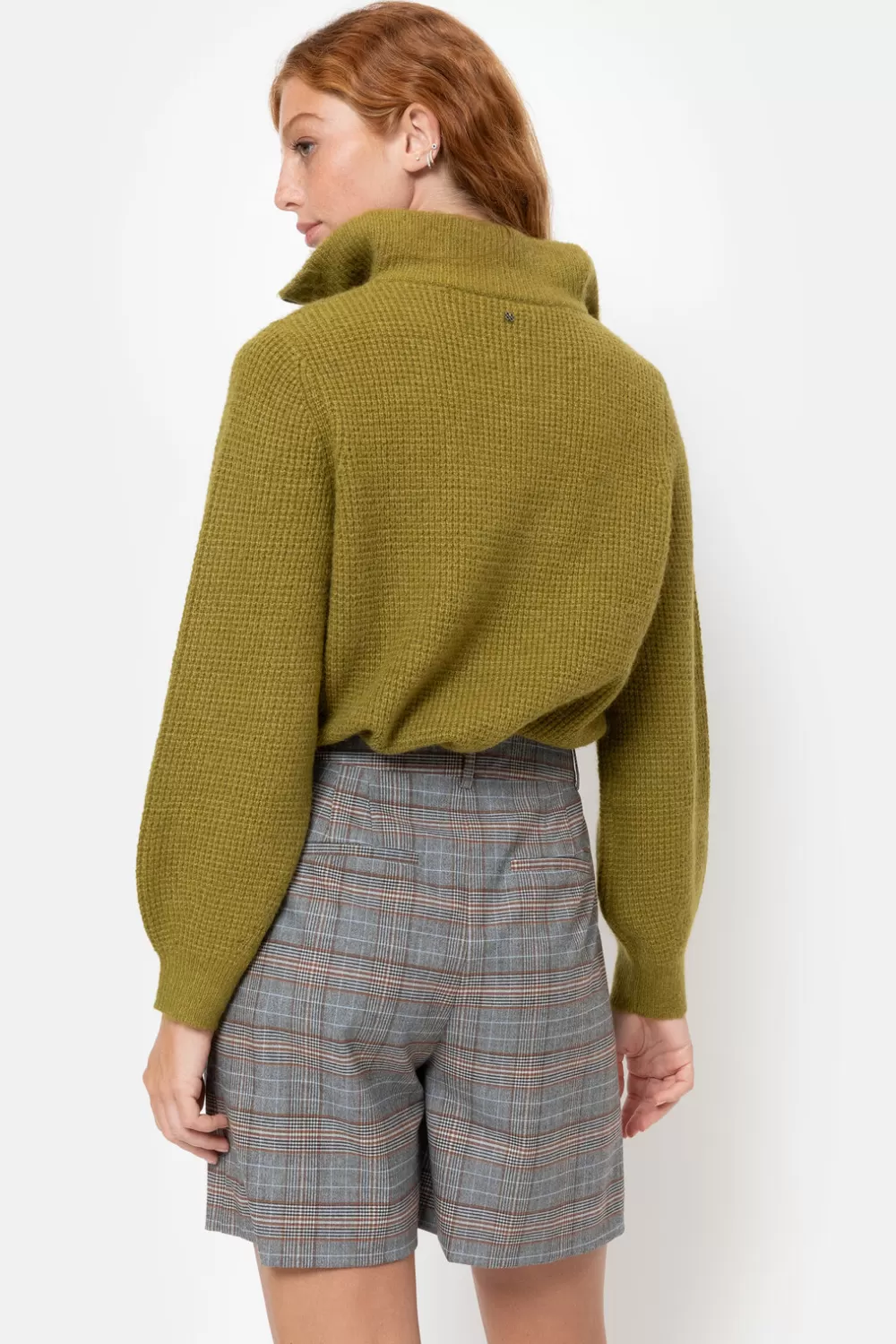 Mosgroene Gebreide Pull Met Lange Mouwen.Een Korte Knit Met Een Sportieve Troyerkraag.Combineer Trendy Met Een Bruine Ge…