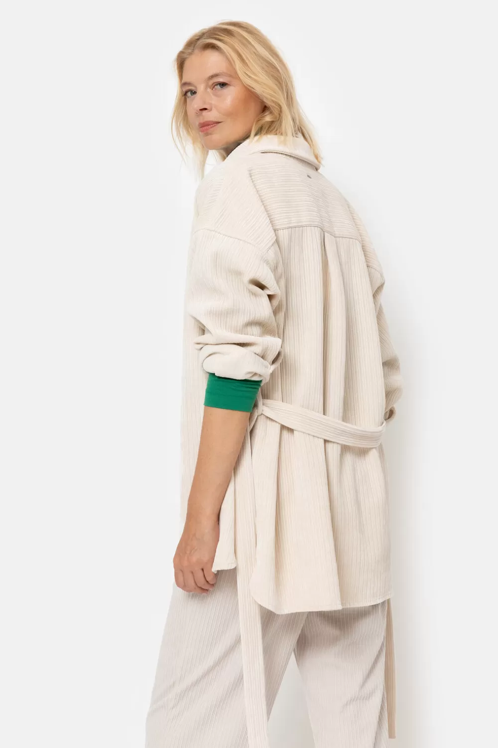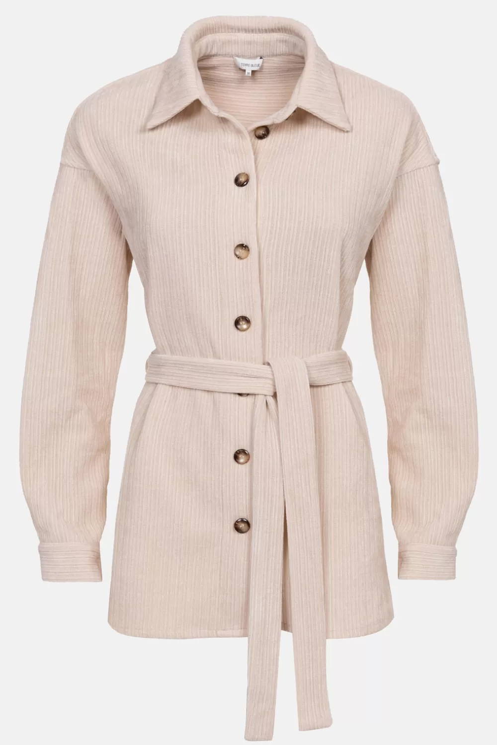 Lichtbeige Hemdvest In Zeer Zacht Ribvelours.Een Halflange Snit Met Een Slip En Elegant Taillelint.Grote Bruine Knopen, …