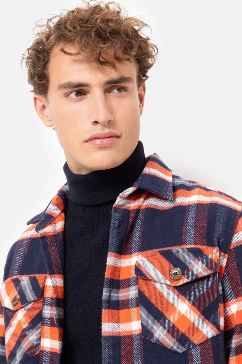 Modieus Boven Een Blauwe Sweater Met Rolkraag.