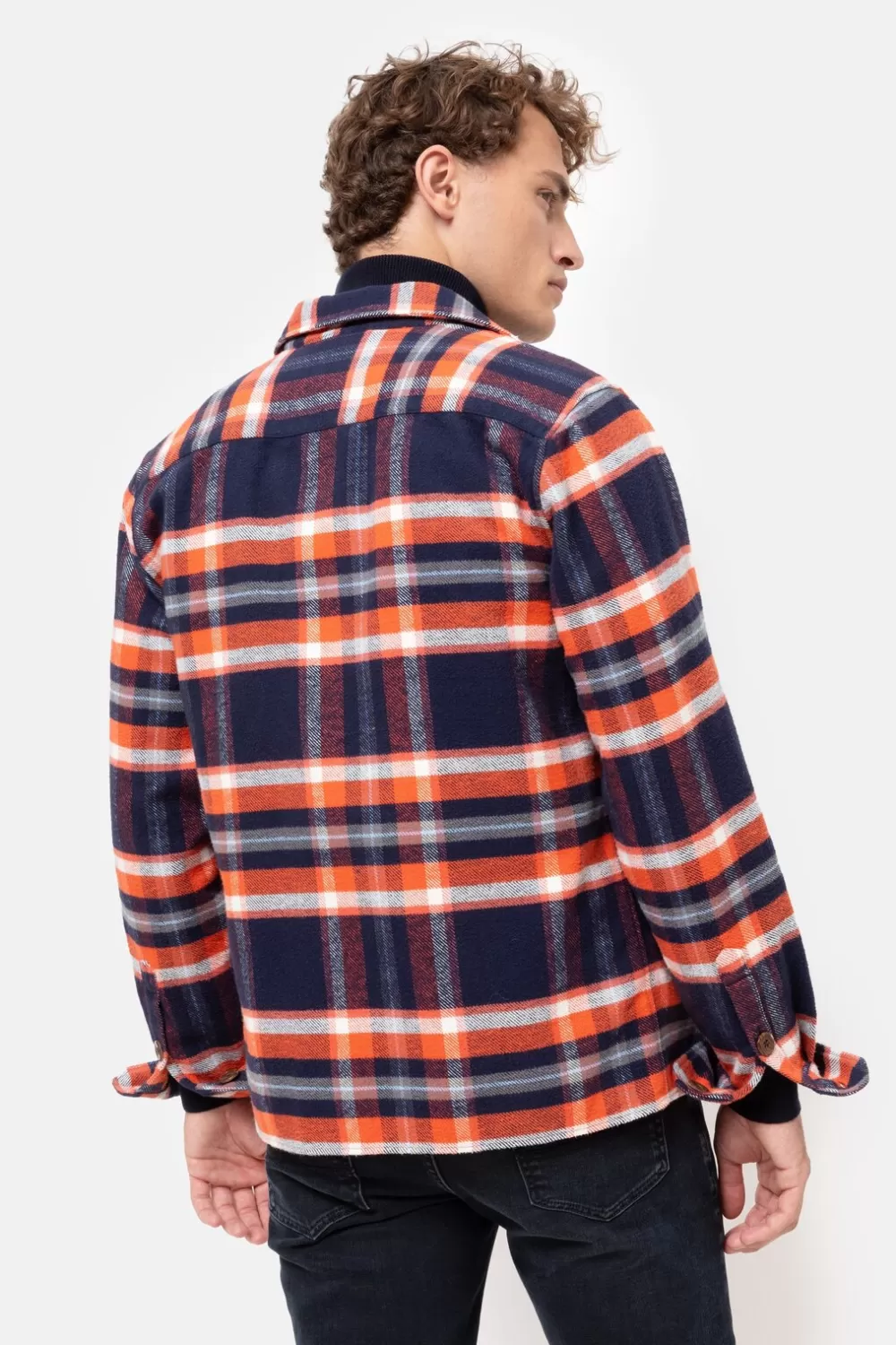 Rood Geruit Flanellen Mannenhemd Van 100% Katoen.Comfortabele Regular Fit Met Grote Bruine Knopen.Modieus Boven Een Blau…