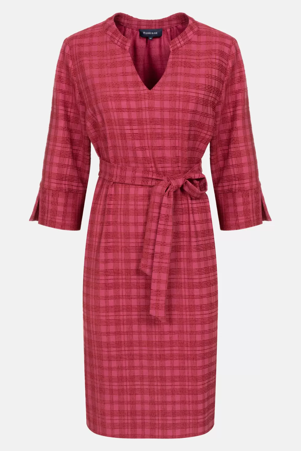 Bordeaux Geruit Kleedje Tot Aan De Knie.Een Losse Snit Met Een Elegante V-Hals En Taillelint.En 3/4 Mouwen Met Manchette…