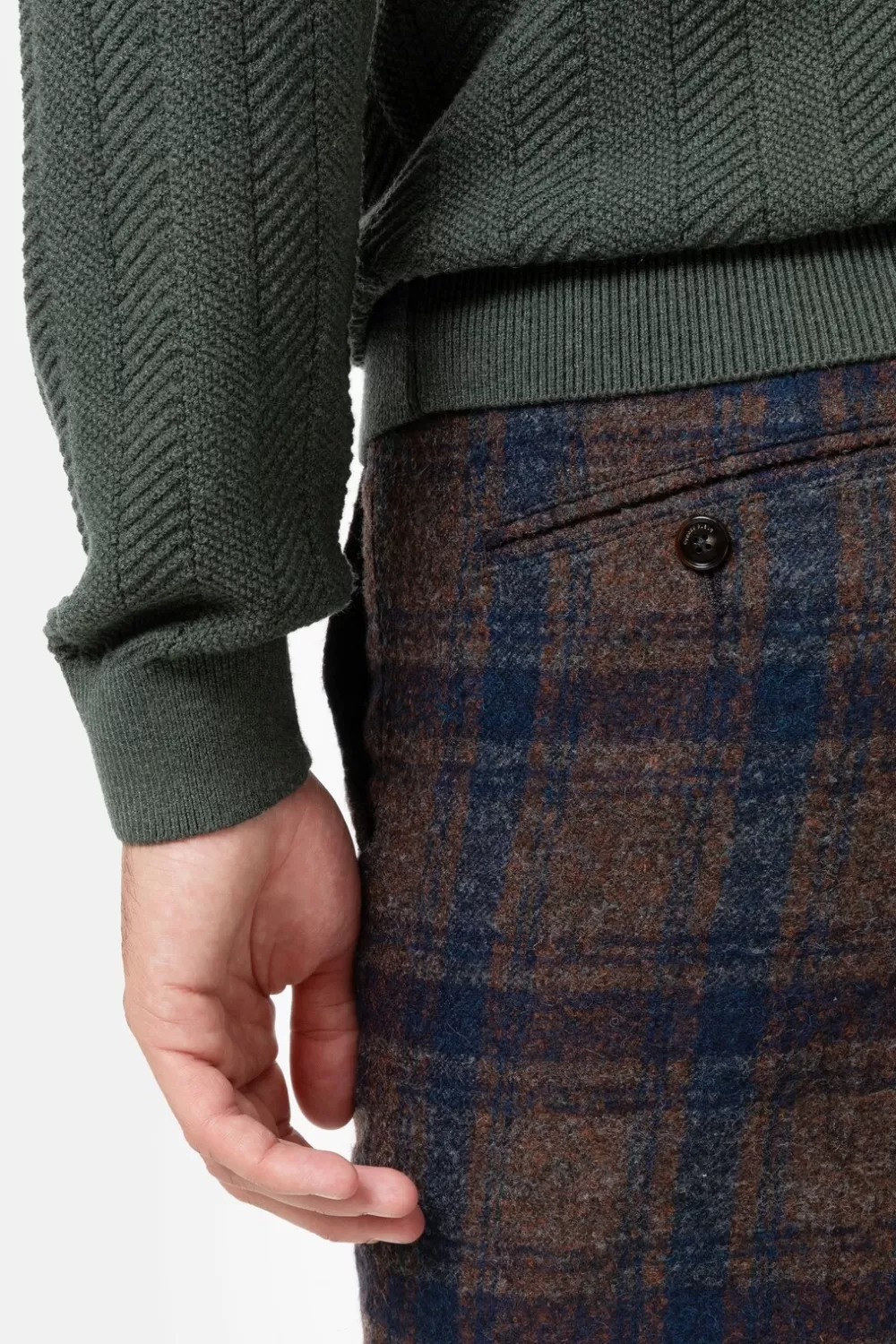 Blauw-Bruine Herenbroek In Een Warme Wolmix.