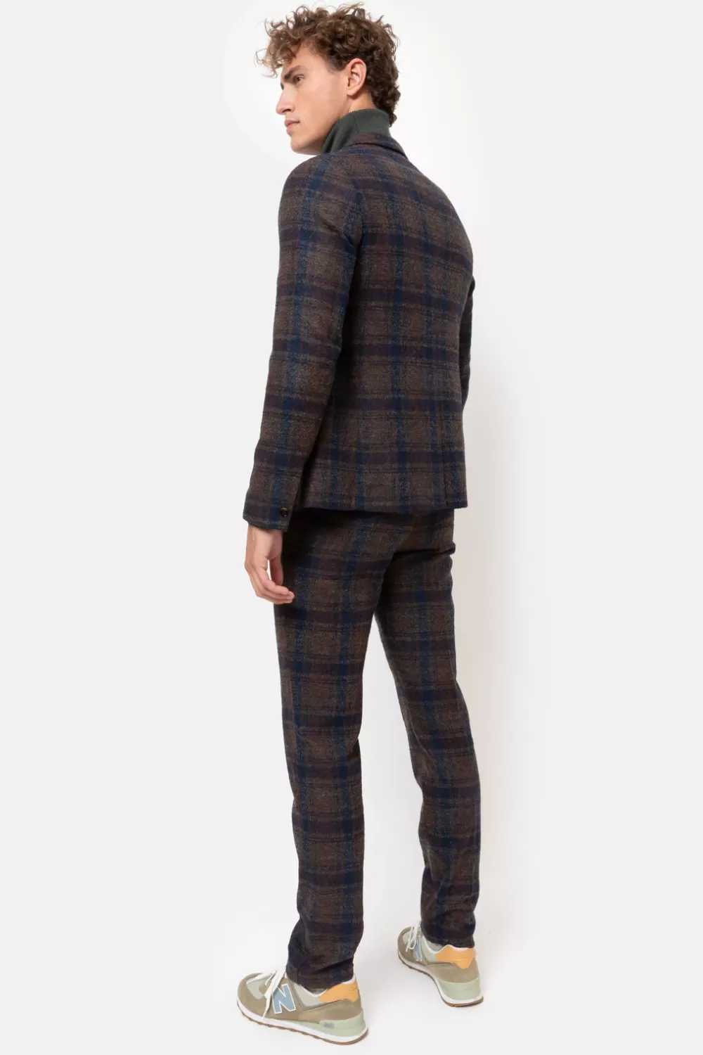 Blauw-Bruine Herenbroek In Een Warme Wolmix.Een Iets Meer Nauwsluitende Snit Met Zijzakken.Een Geklede Vouw En Zakjes Me…