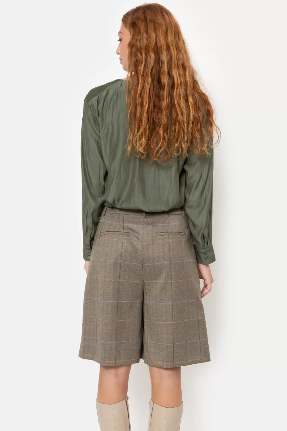Kakigroene Blouse In Een Fijne, Soepelvallende Stof.