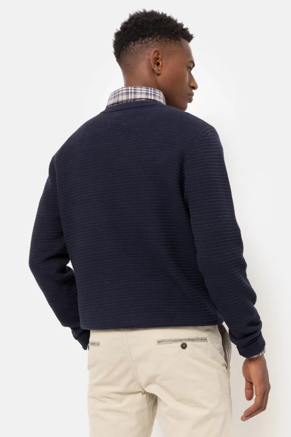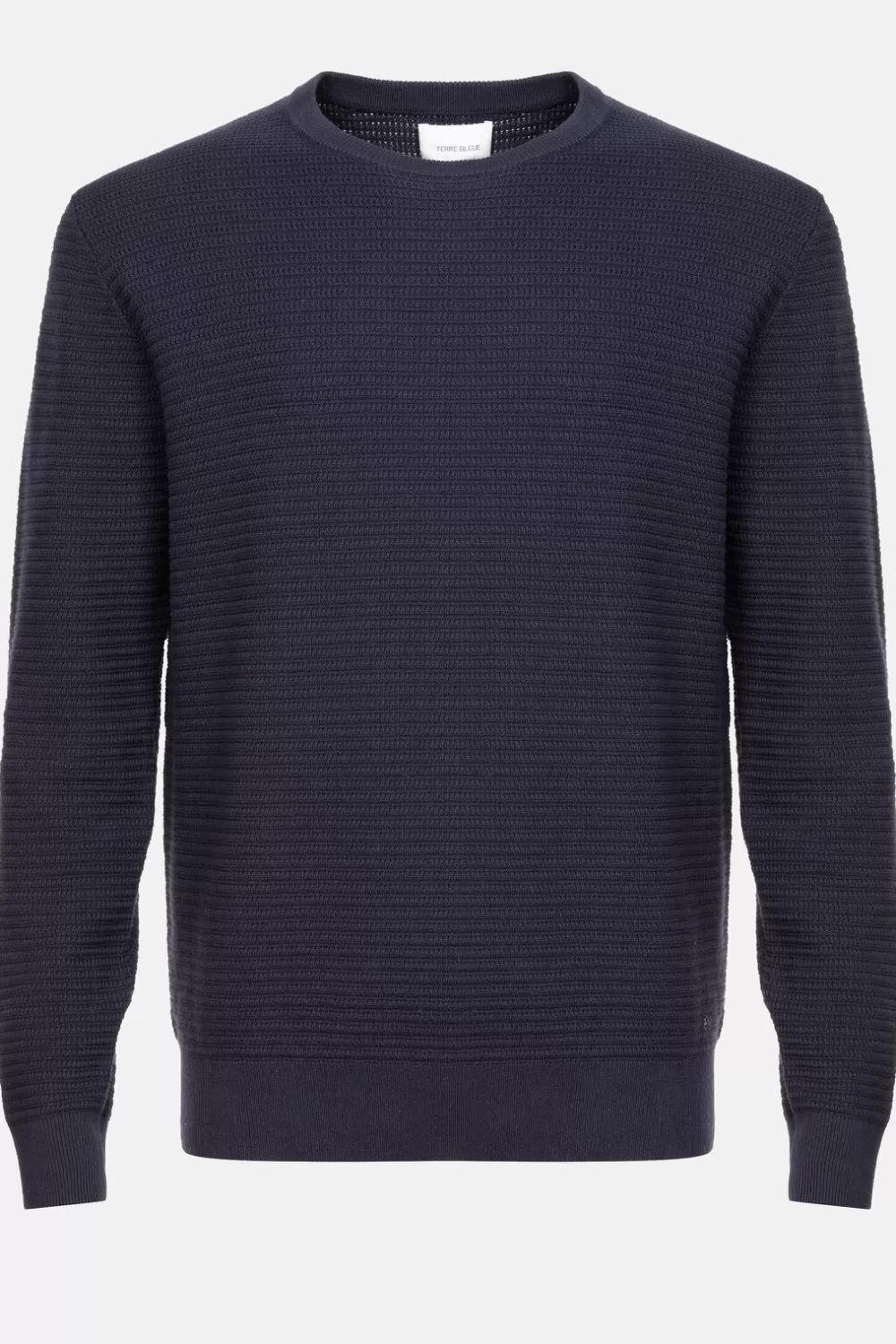 Blauwe Gebreide Mannentrui In 100% Katoen.