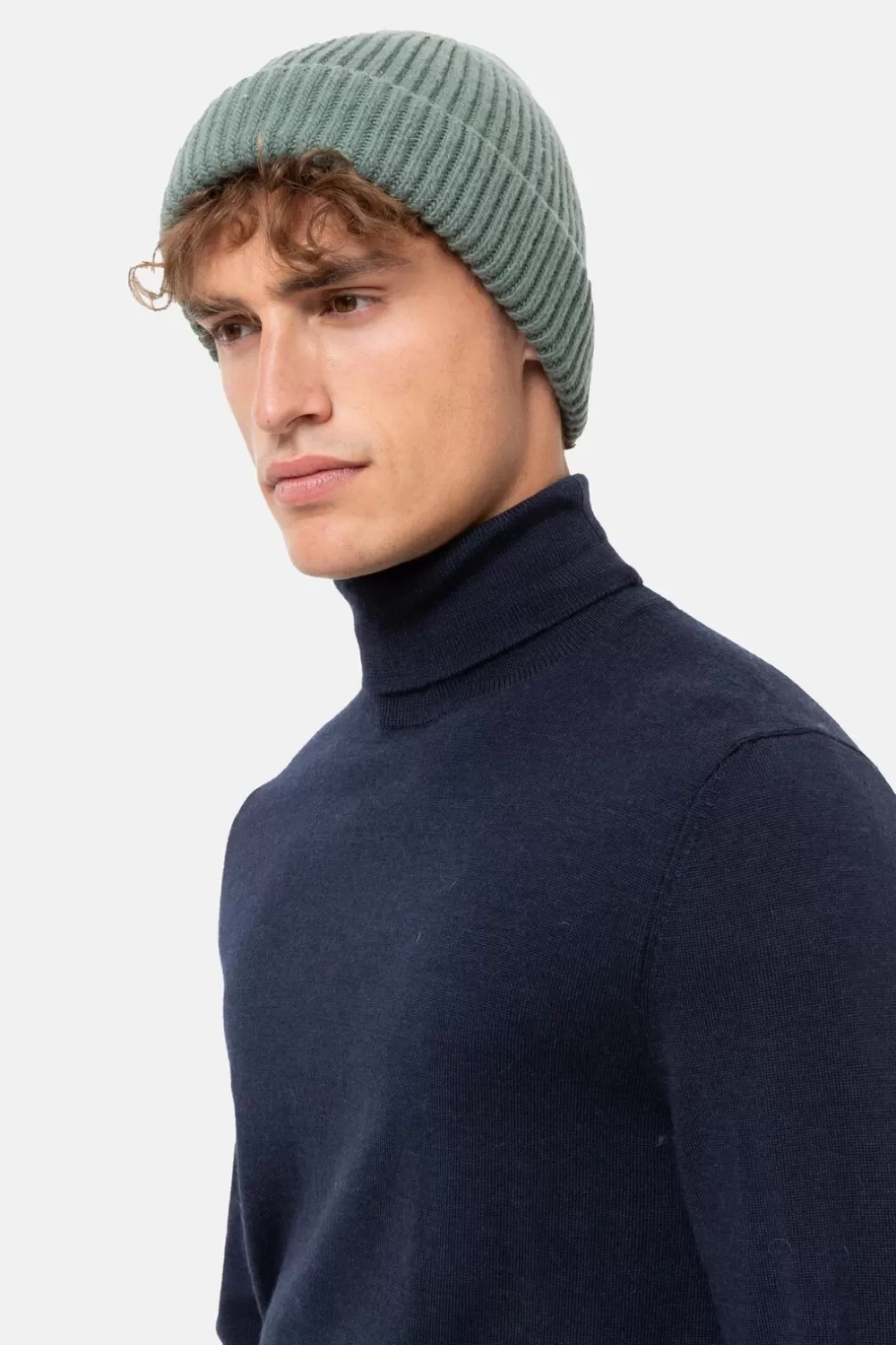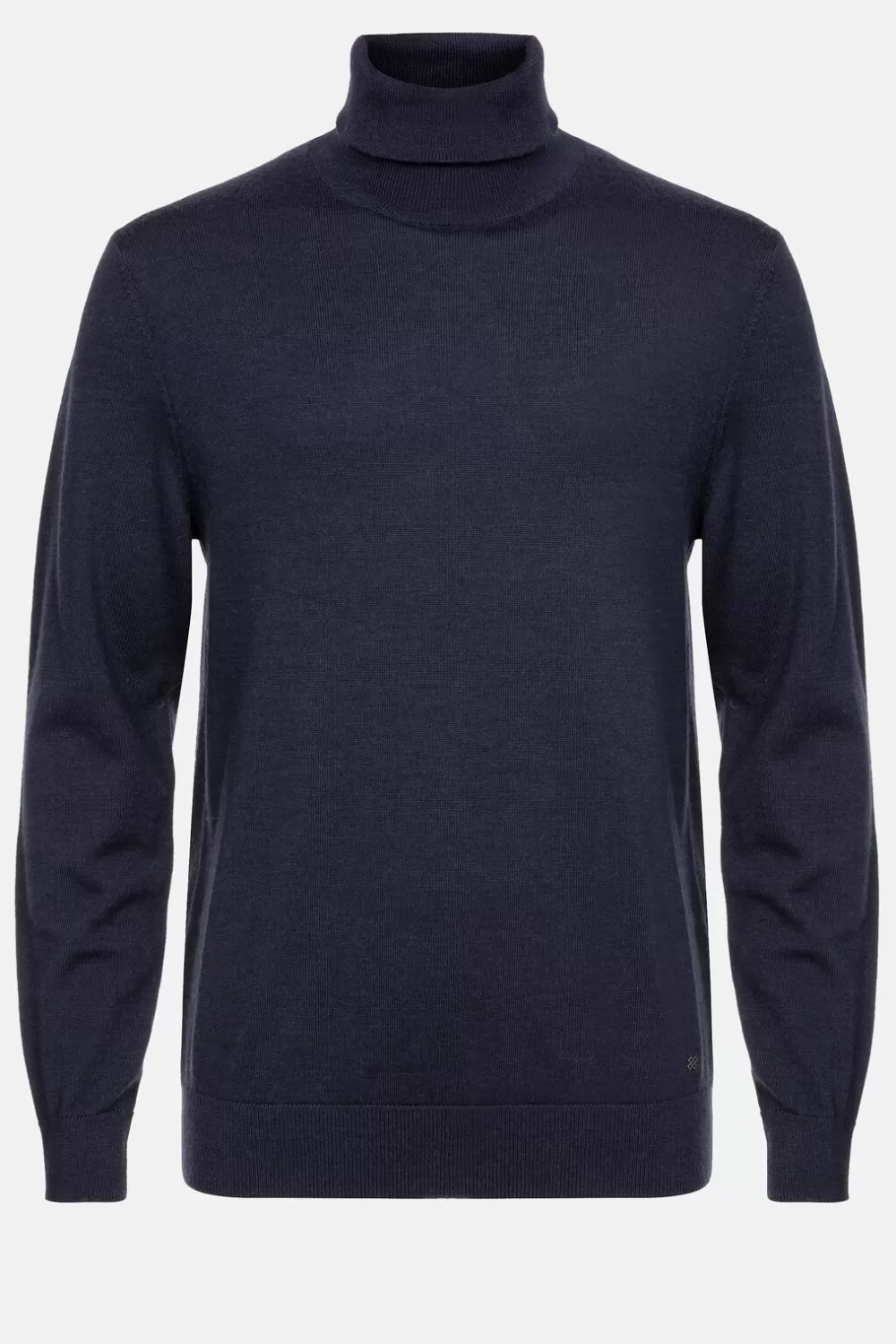 Donkerblauwe Pullover In 100% Zuivere Merinowol.Geklede Fit Met Een Rolkraag En Lange Mouwen.Met Een Elastiek In De Manc…
