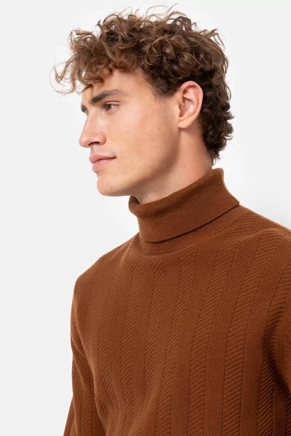 Bruine Mannentrui Gemaakt Van 100% Katoen.Een Comfortabele Snit Met Een Fijn Jacquard Motief.Lange Mouwen En Een Stijlvo…