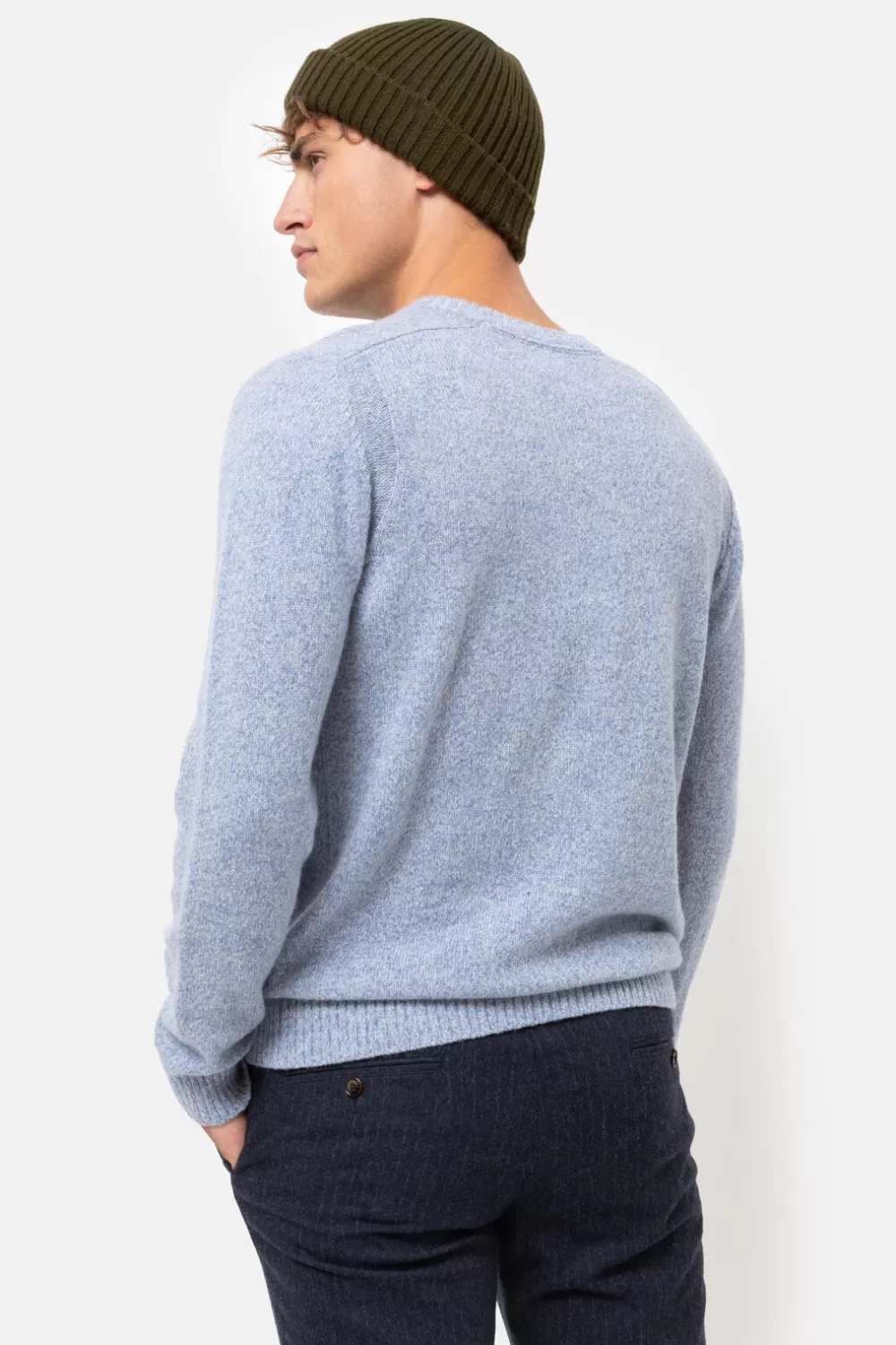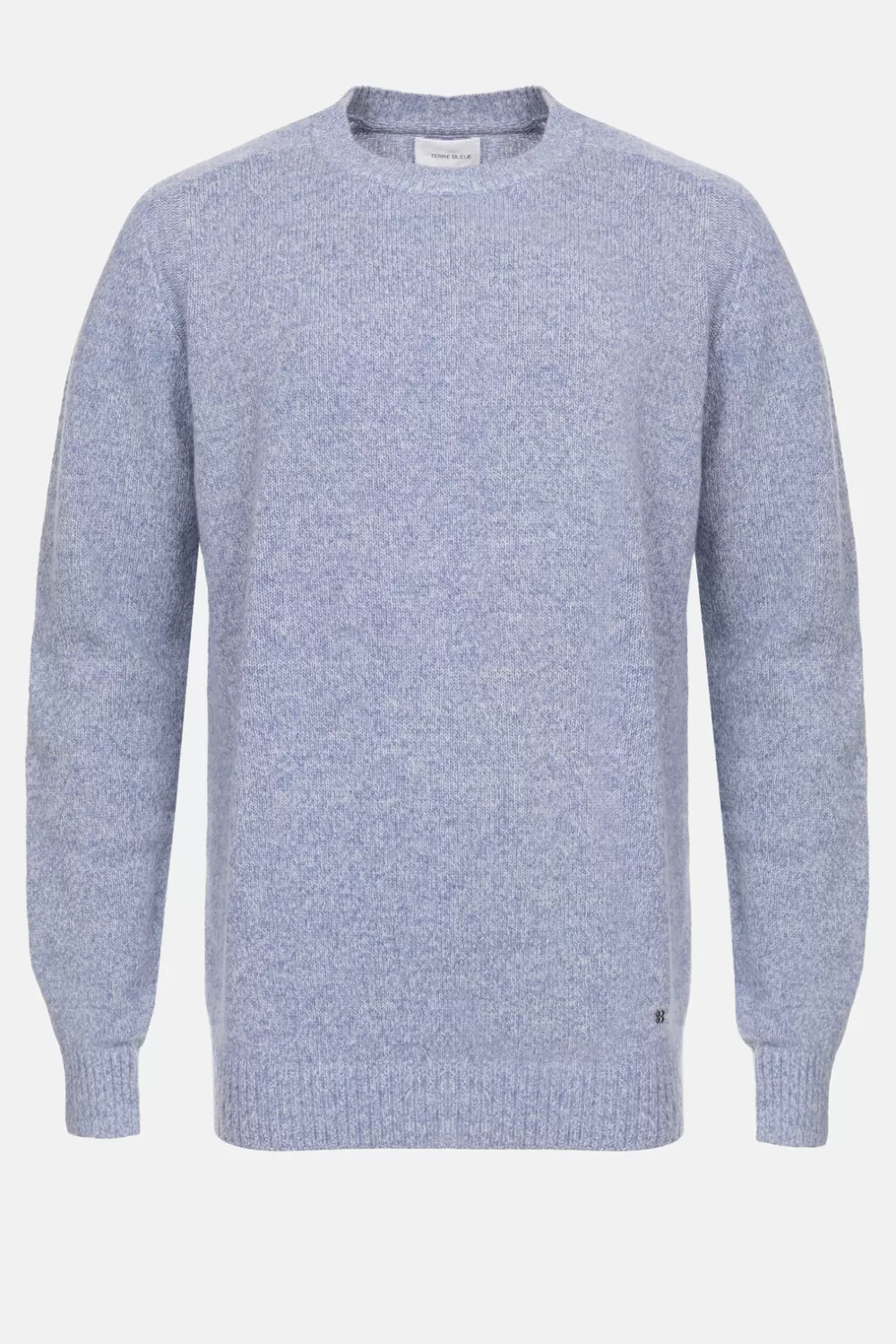 Blauw Gemeleerde Trui In Wol En Gerecycled Nylon.