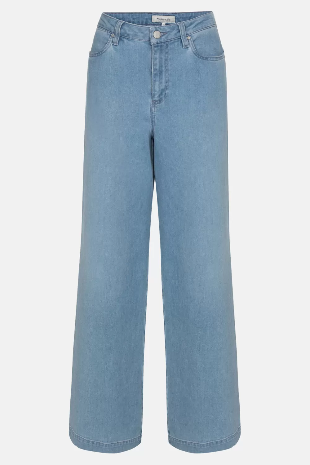 Blauwe Dames Jeans In Katoen Met Wat Stretch In.Met Elegante Wijde Broekspijpen En Een Hoge Taille.Combineer Zomers Met …