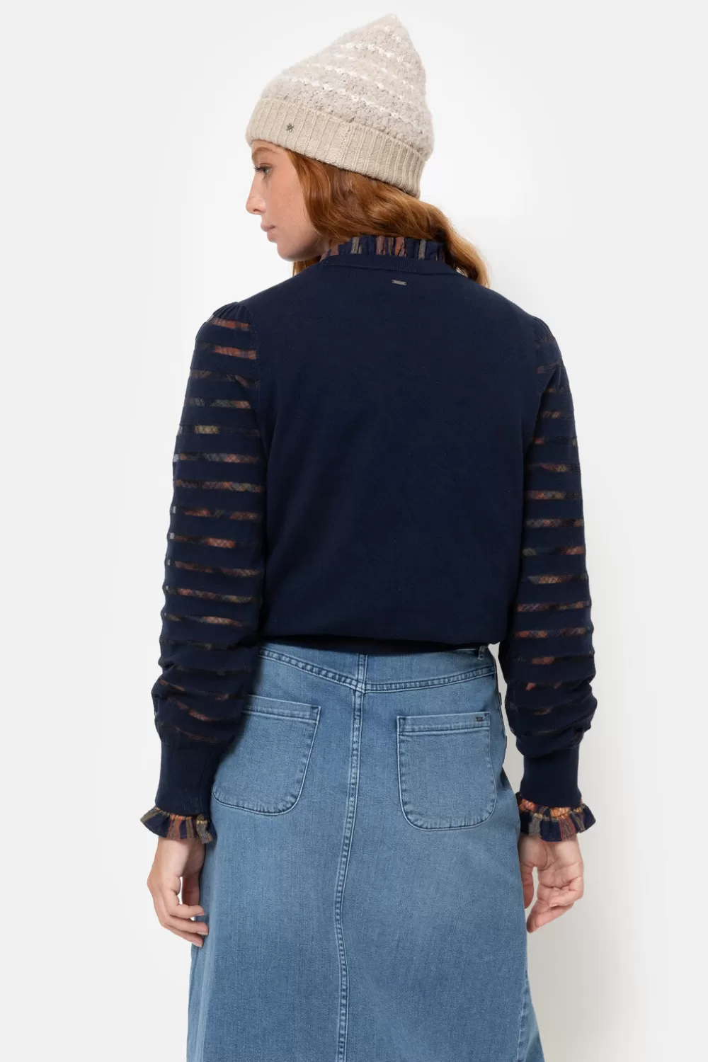 Donkerblauwe Tricot Trui In Een Fijne Katoenmix.