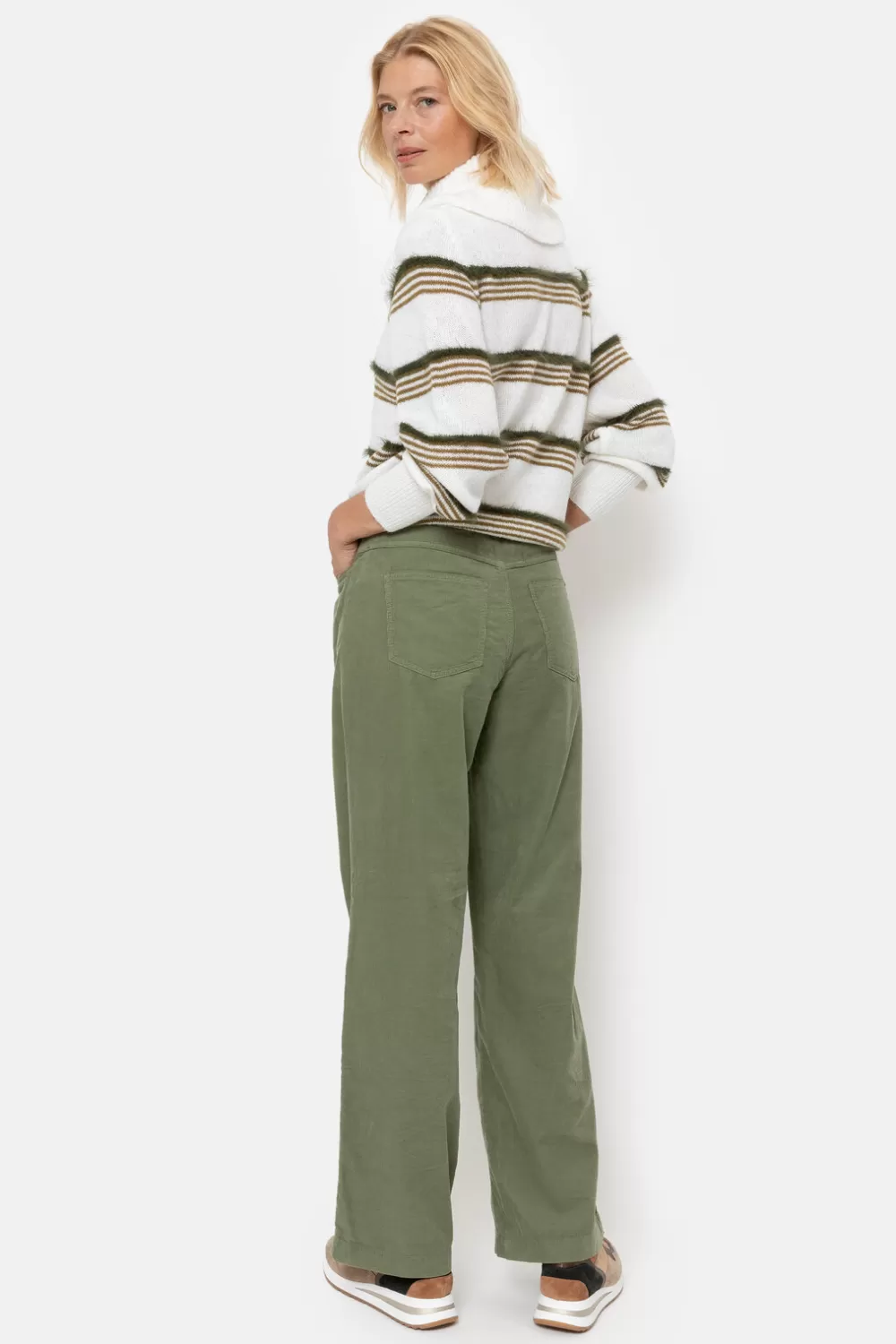Draag Casual En Chic Met Een Kaki Ribfluwelen Broek.