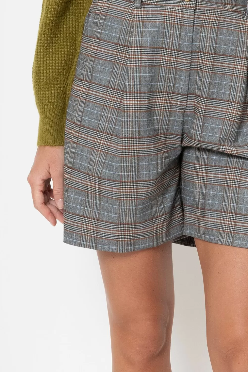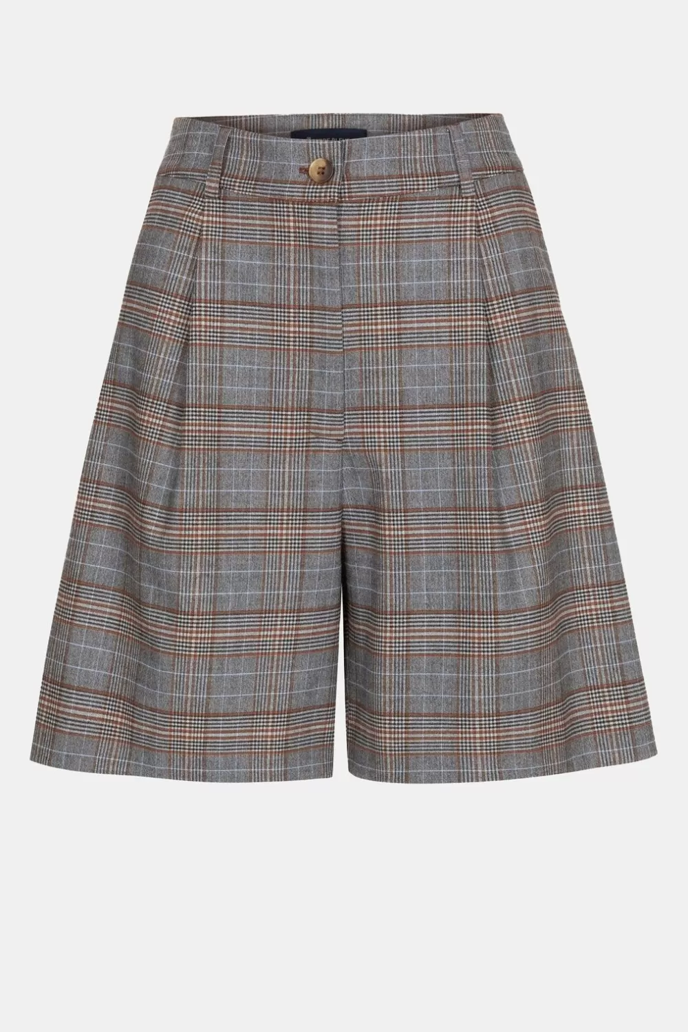 Grijs-Bruin Geruite Short In Een Soepele Viscosemix.