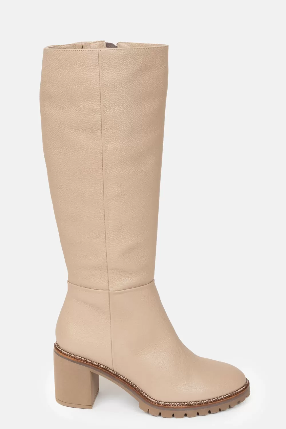 Hoge Beige Laarzen In 100% Leder.Met Een Comfortabele Rits En Ingewerkt Elastiek.Iets Dikkere Beige Zolen En Een Elegant…