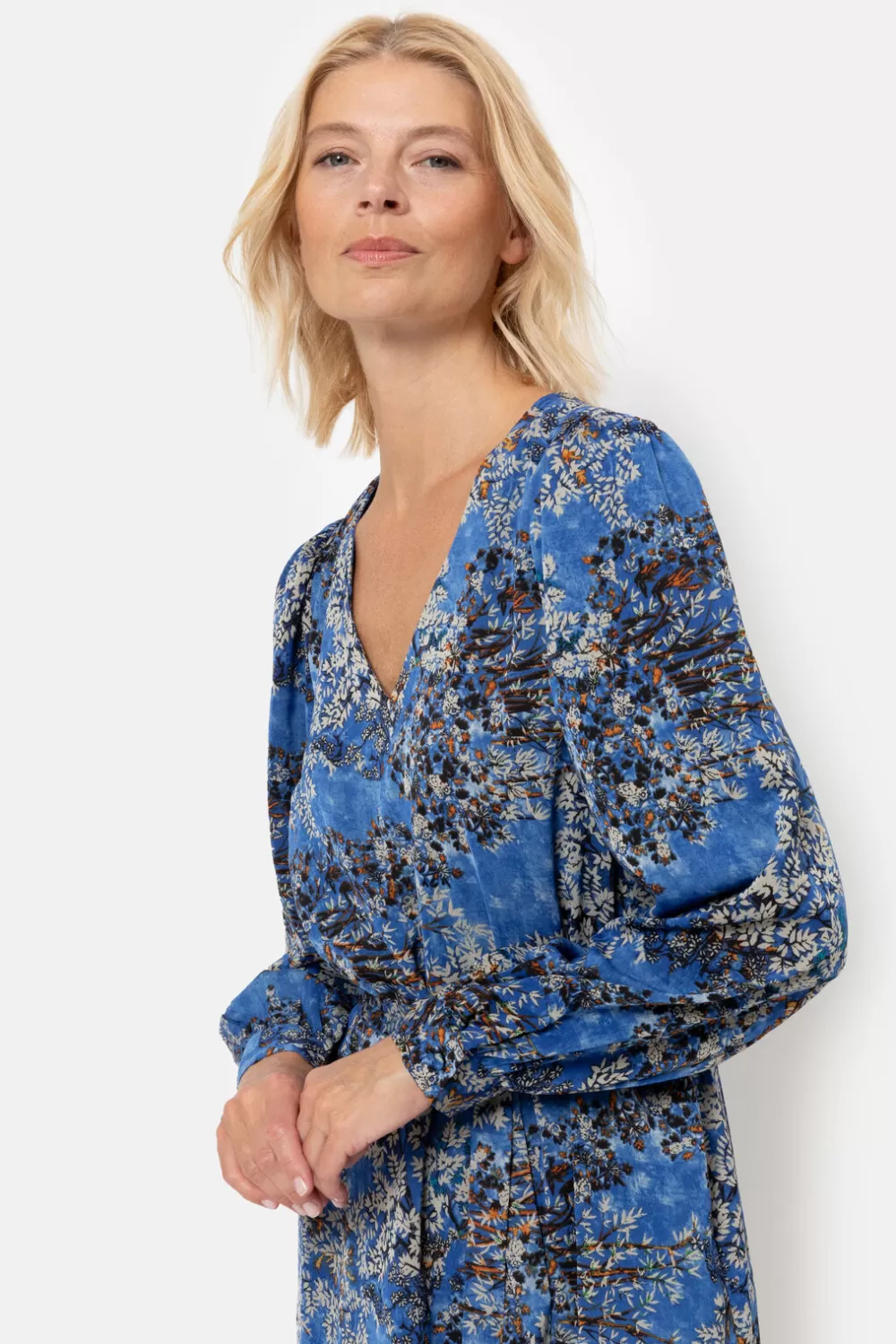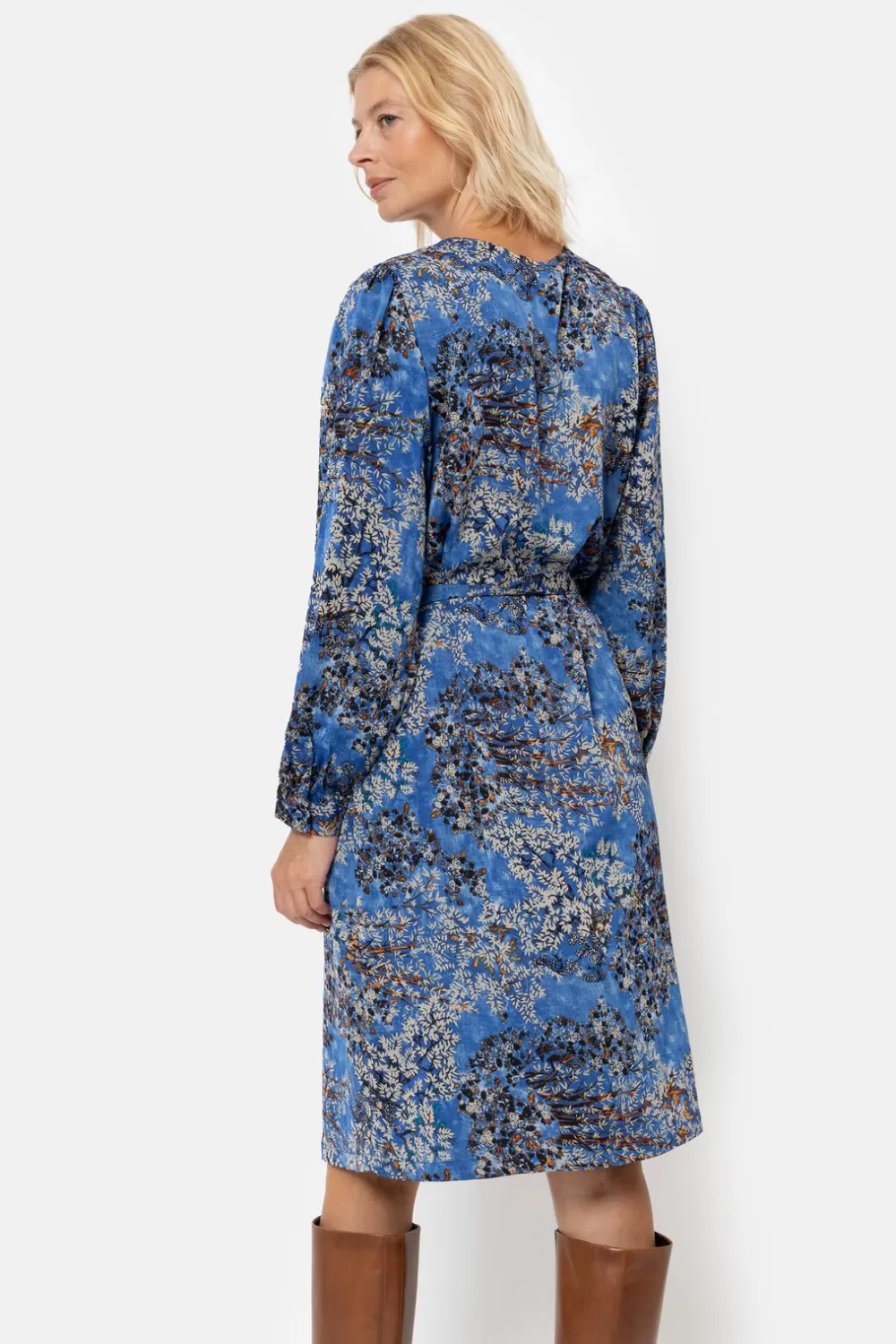 Kort Blauw Kleedje In Een Soepele, Glanzende Stof.Knielange Snit Met Zijzakjes En Een Elegante V-Hals.Draag Losjes Of Ac…
