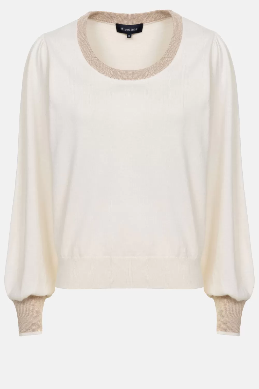 Lichtbeige Pull In Fijn Tricot Van O.A. Katoen.Een Vrouwelijke Boxysnit Met Een Elegante Boothals.Stylish Boven Een Bord…