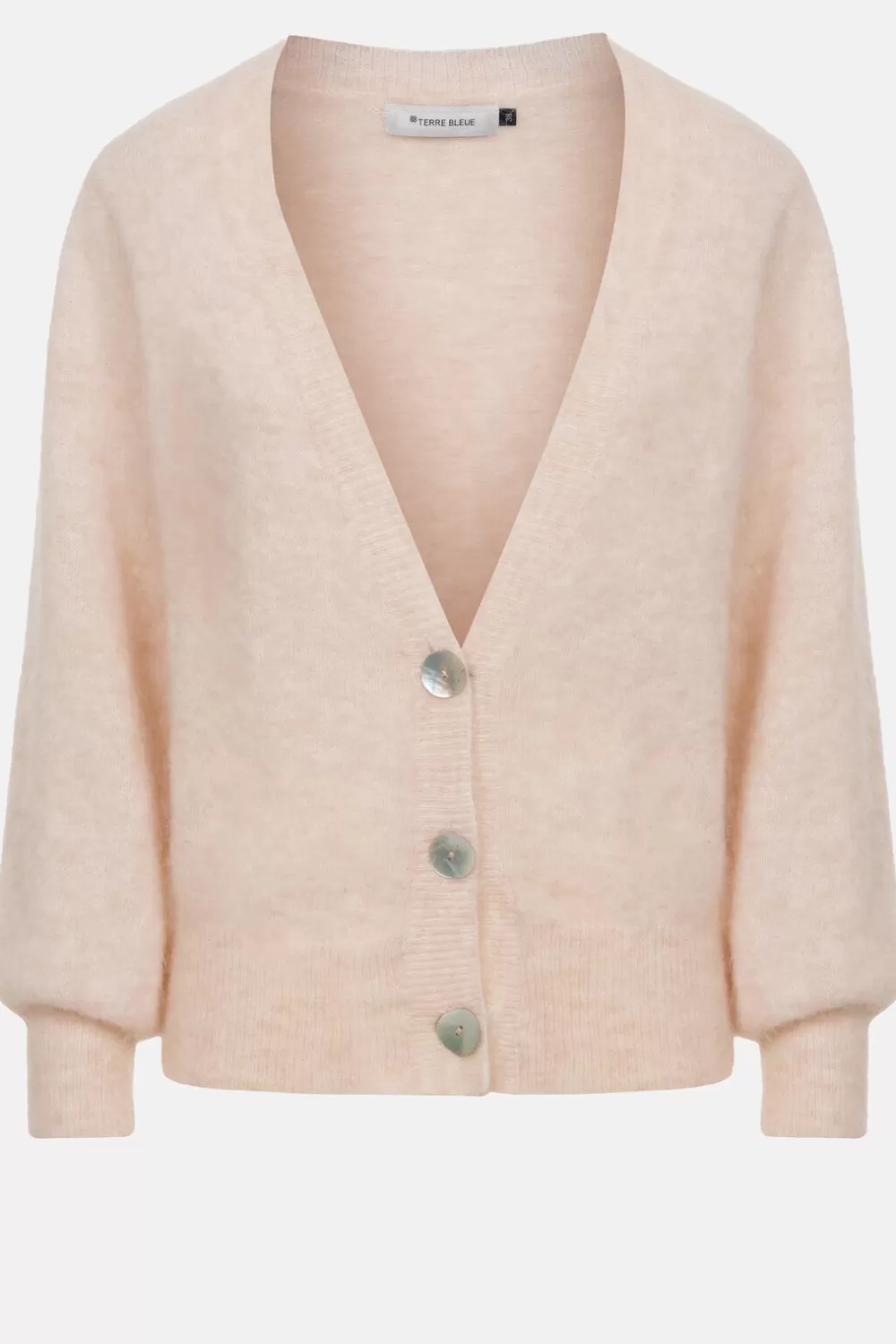 Een Diepe V-Hals En Grote Parelmoeren Knopen.