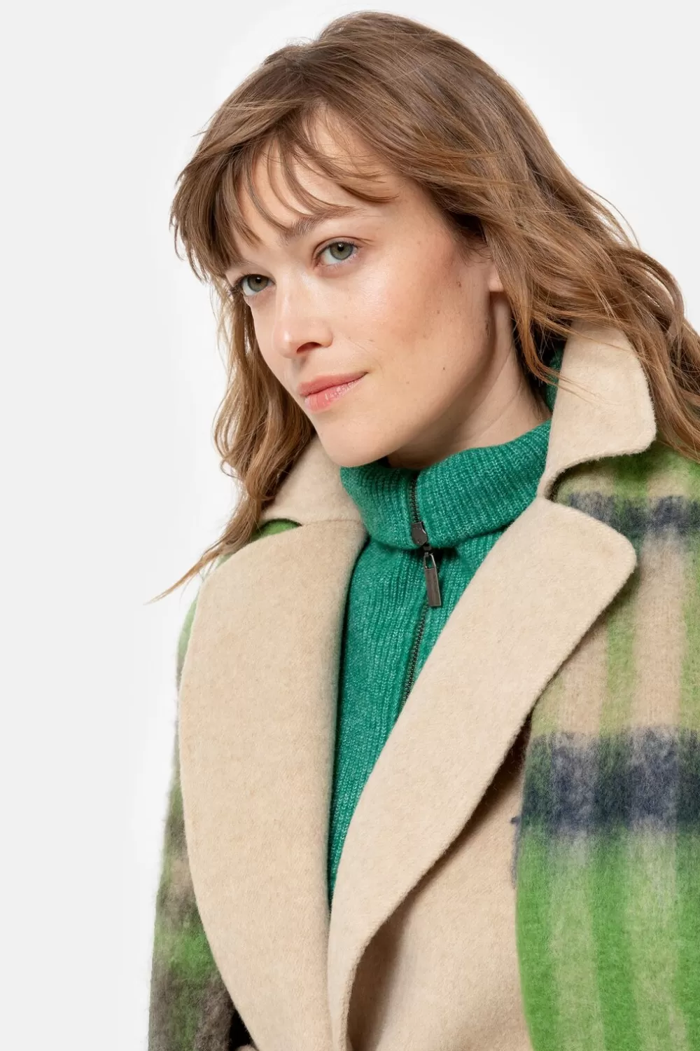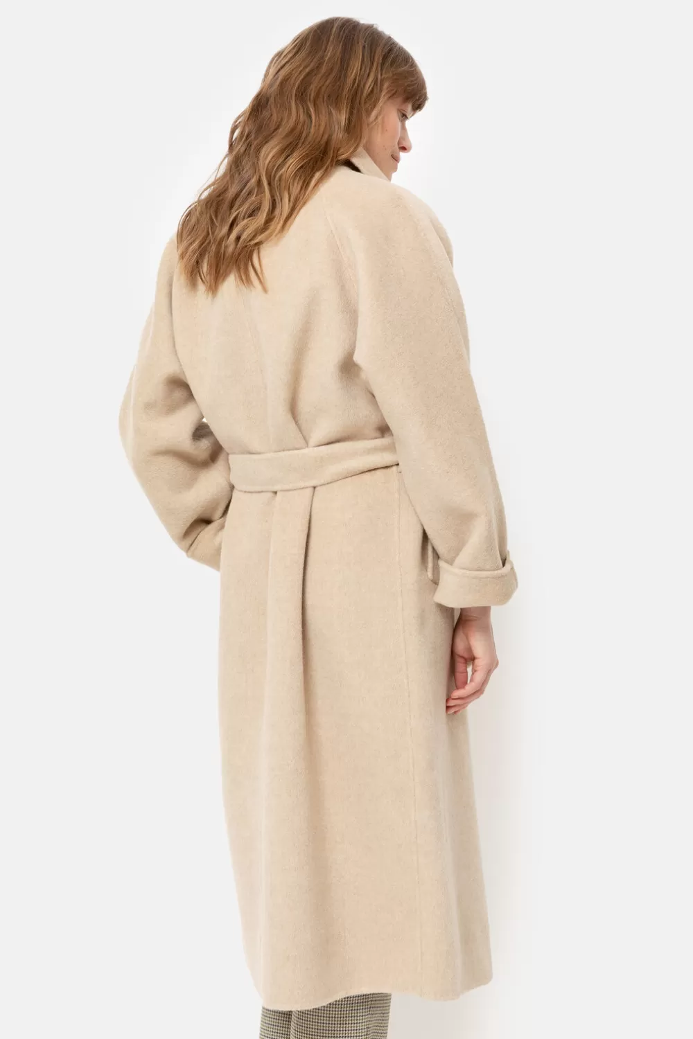 Lange Damesmantel In Een Zachte, Beige Wolmix.