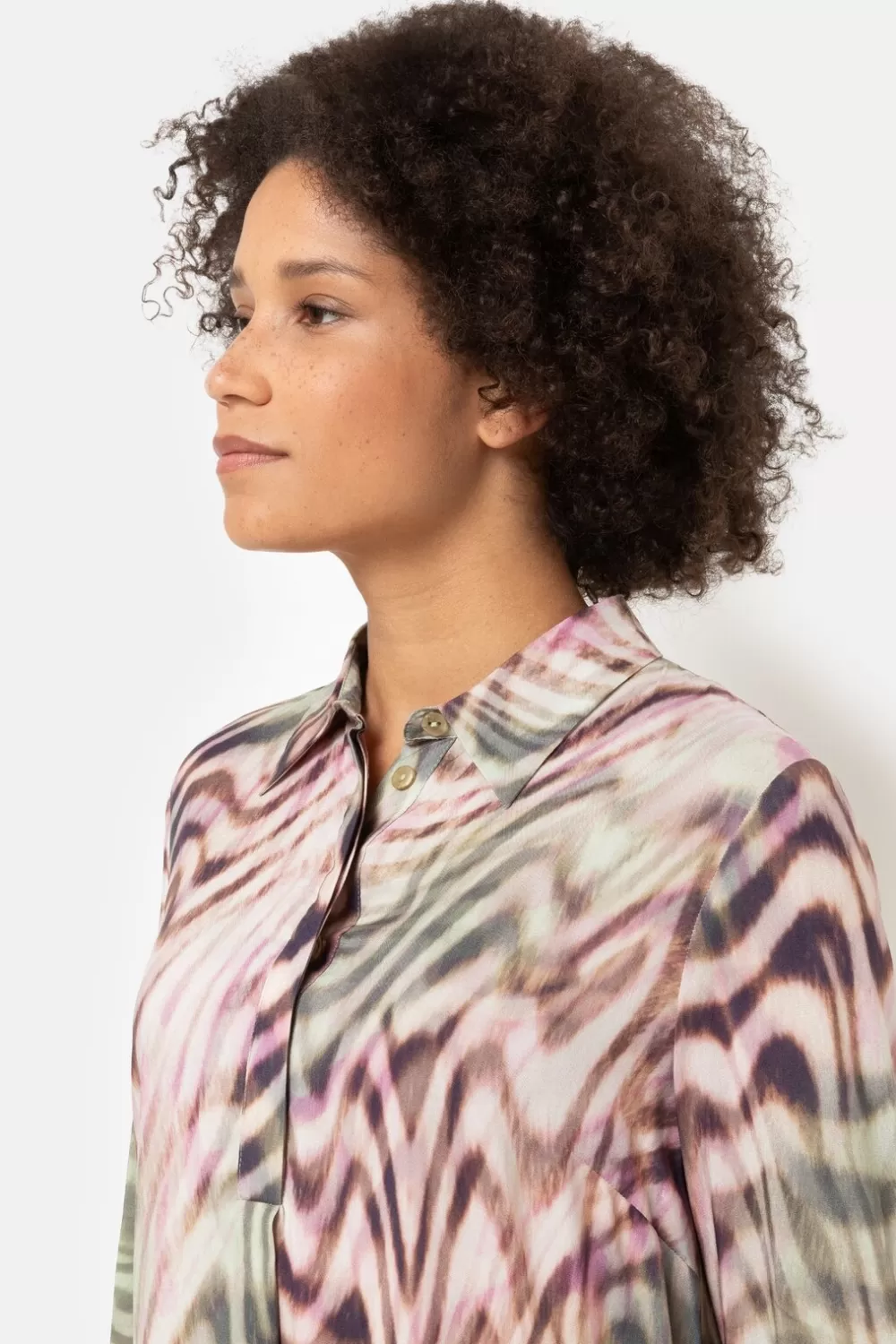 Paars-Groen Kleedje In 100% Fijn En Soepel Viscose.Losse Fit Met Steekzakjes En Een Elegante Hemdkraag.Combineer Trendy …