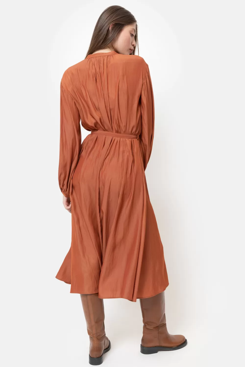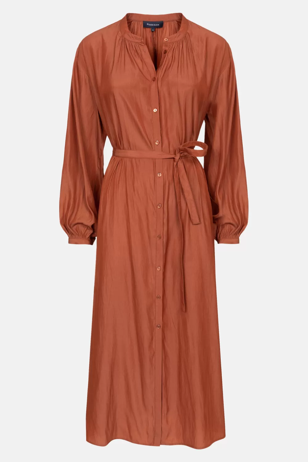 Bruin Lang Kleedje In Een Fijne, Zwierige Stof.