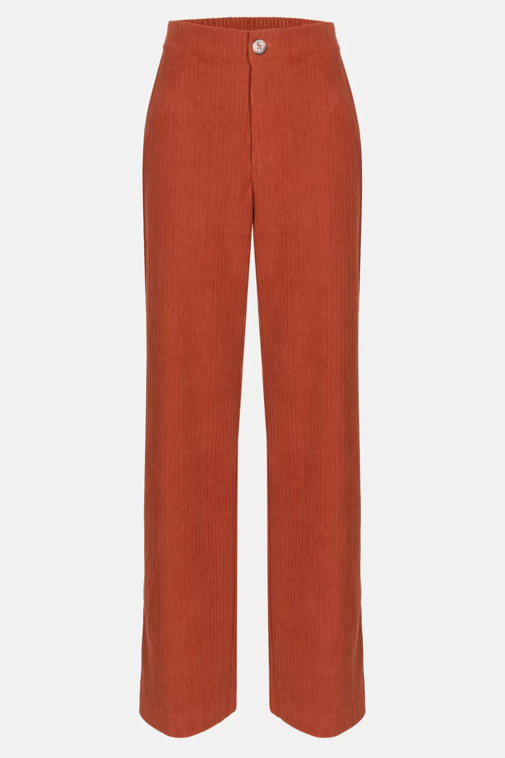 Bruine Damesbroek In Zacht En Soepel Ribfluweel.Een Elegante Snit Met Rechte, Wijde Broekspijpen.Met Comfortabele Zijzak…