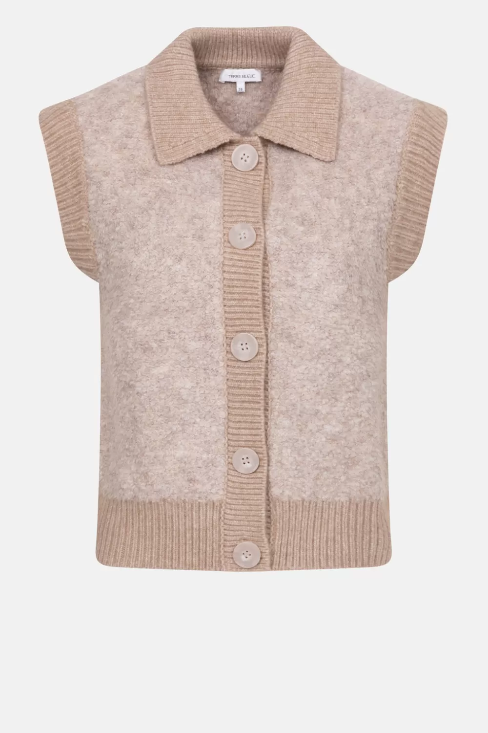 Beige Mouwloos Gilet Met Grote Knopen.
