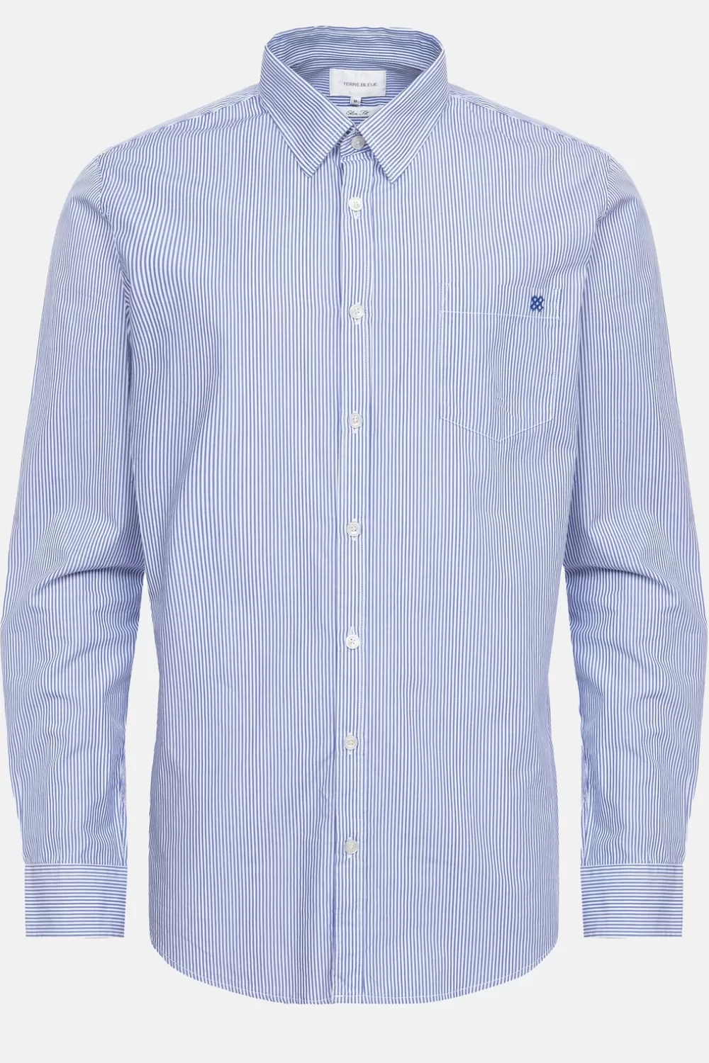 Blauw-Wit Hemd Voor Heren In 100% Biokatoen.Flatterende Slim Fit Met Knoopjes En Een Borstzak. En Lange Mouwen Met Dubbe…